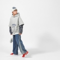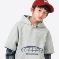 まるでチェックシャツをレイヤードしたように着せなくてもスーツでスタイリングを完成してくれるフードTシャツですネックラインのスナップボタンでネックラインをオープンできます。