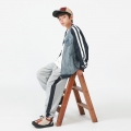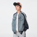 ボディデニム素材に袖部分のライトラインが引き立つ集業ジャンパーベーシックなTシャツやシャツに手軽に演出するのが好きです