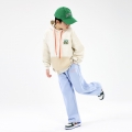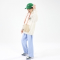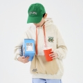 やわらかいオートミールカラーにストリングと配色、レタリングでどこかにポイントを与えたフードマンツーマンですカジュアルデイリールックとして活用しやすいアイテムです。