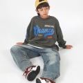 ピグメントウォッシングで陰々たるカラー感がオシャレなTシャツです グラビティなレタリングプリントでポインティを与えて手首絞り仕上げで蹴り込むのもいいですよ