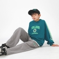 レグラン袖のマンツーマンと日付に落ちるパンツ構成のセットアップですよ 上下のように他のプリンティングで陰々たるセットアップルックを完成してくれます。