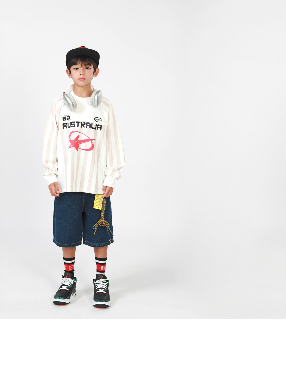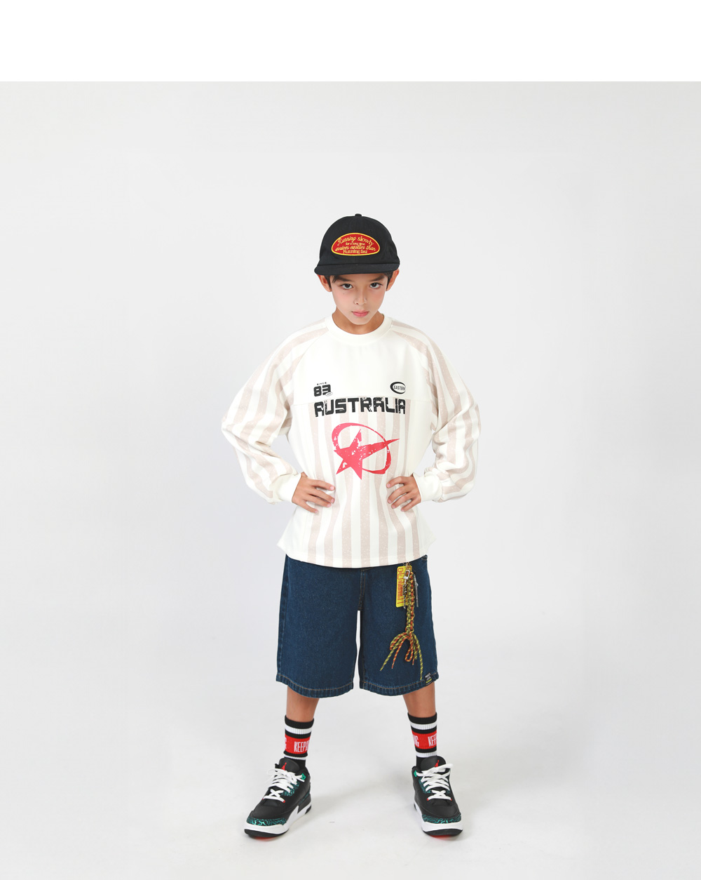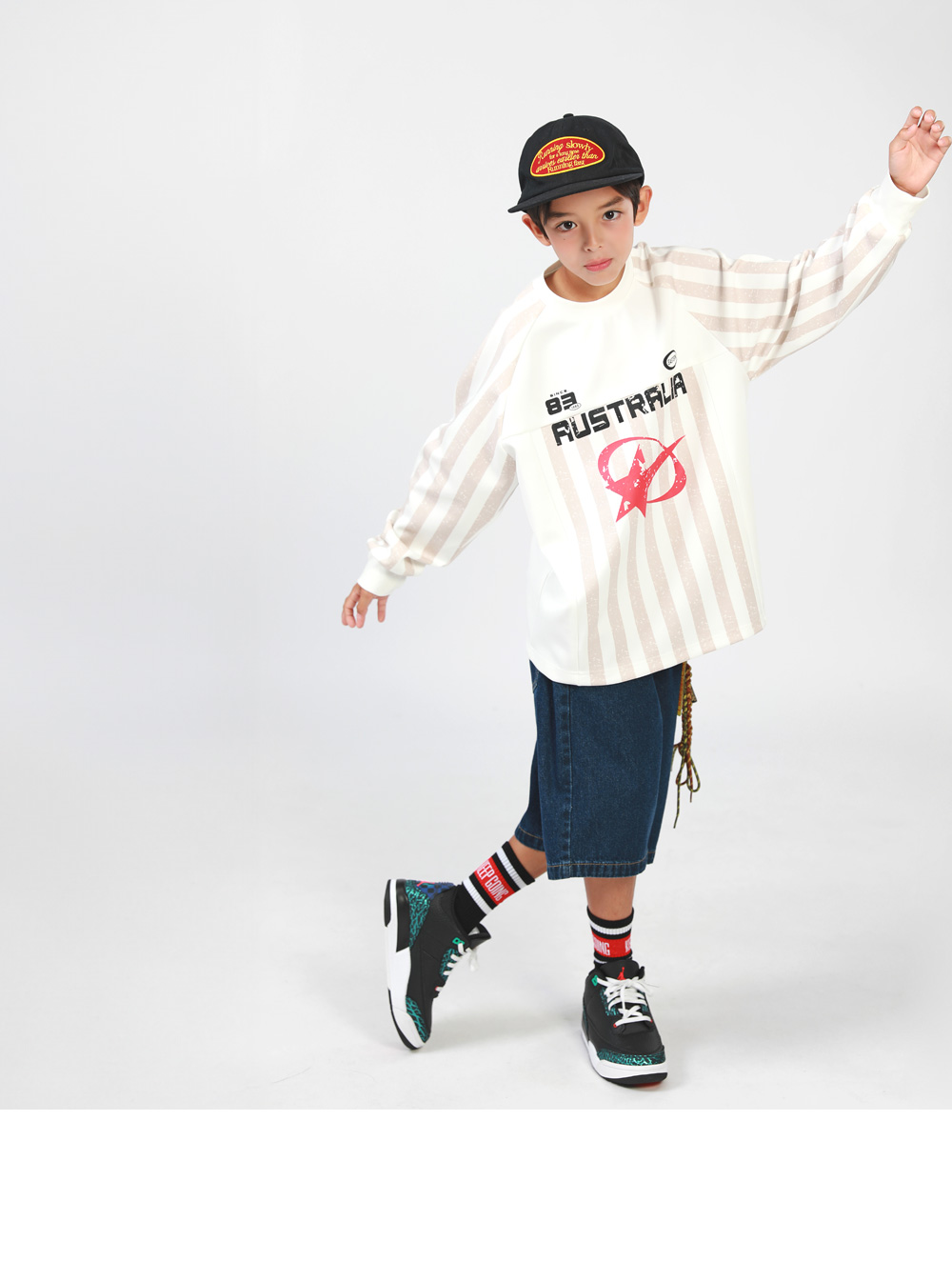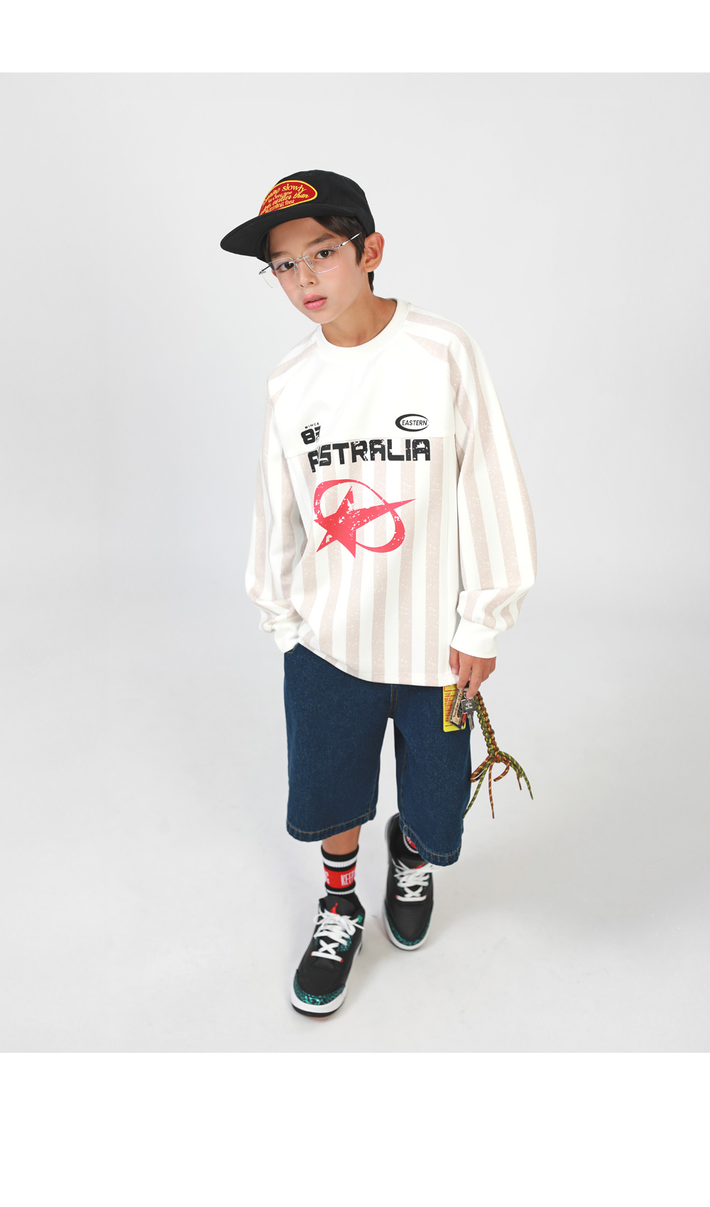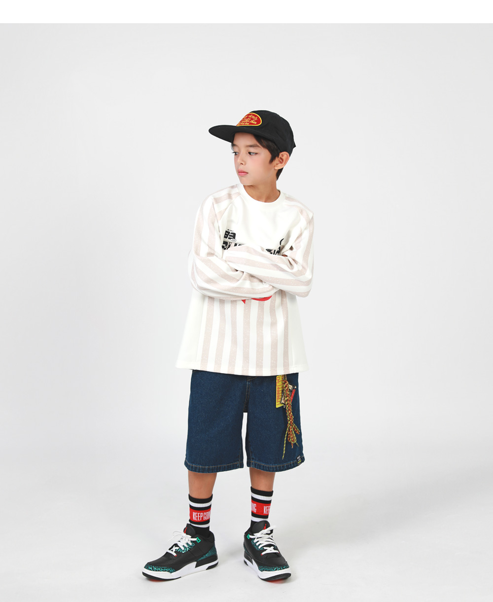 縦ストライプでスポーティなムードを演出してくれたTシャツです。