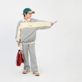 スポーティに楽しむのに最適な半オープンのマンツーマンと一日のパンツ構成の起毛上下セットアップです。