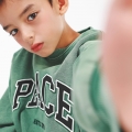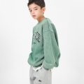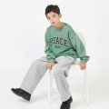 ピグメントウォッシングのオシャレなグリーンカラーでスタイリッシュなマンツーマンですよ 絆起毛裏地で暖かく保温性に優れ、肌寒い天気に着用するのが好きです 全面大型刺繍ディテールでポイントを加えてくれました