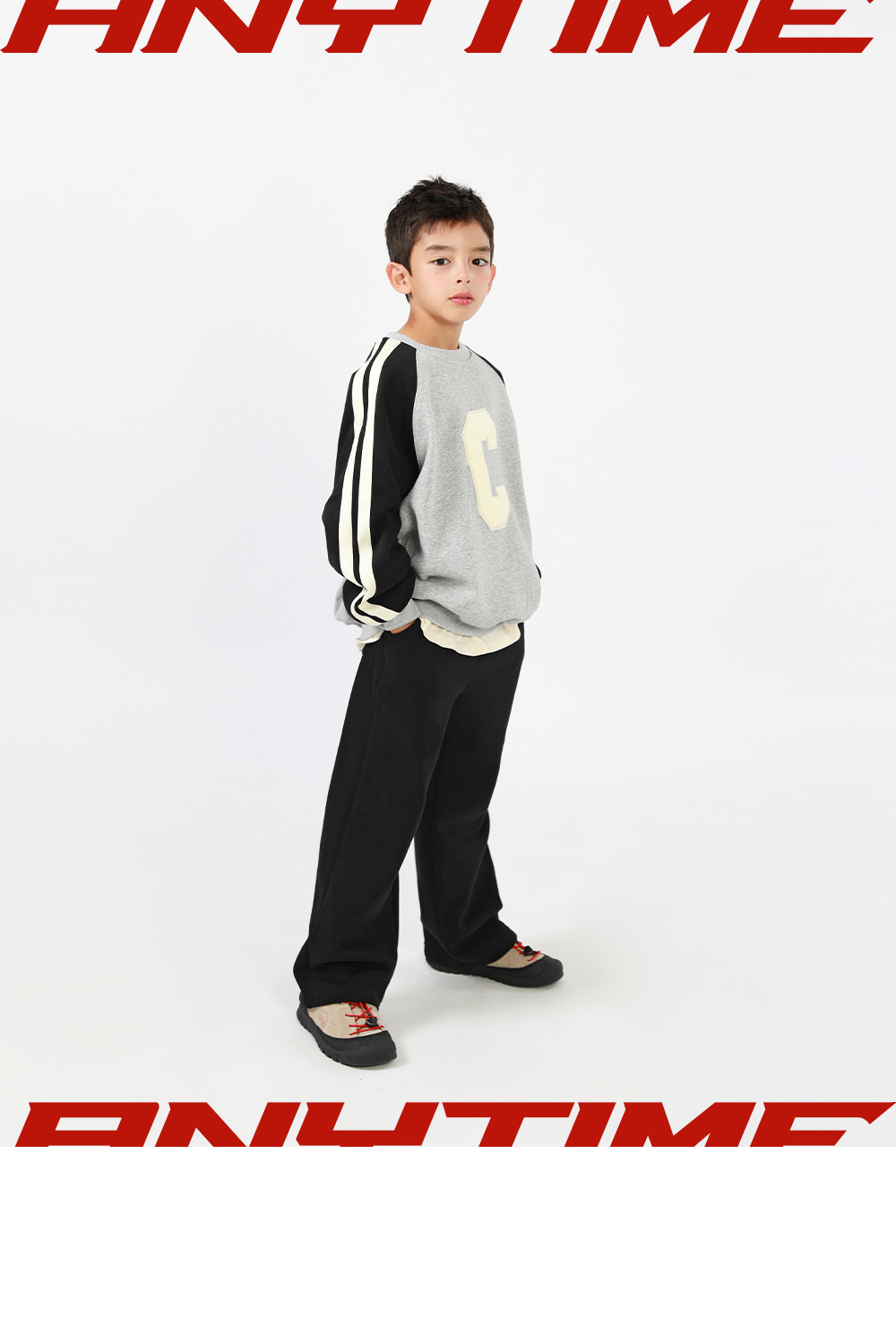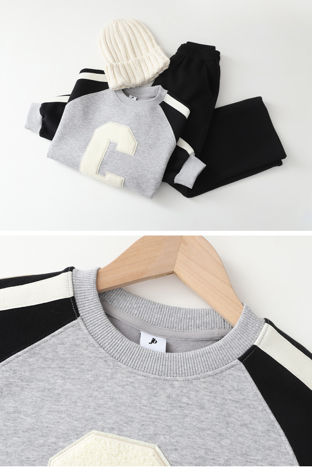 大胆なアルファベットとファンポイントでシンプルな隆起母商ハセットアップです。