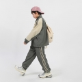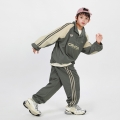 スポーティなムードを生かすミニマル刺繍ポイントとユニークなウーブン素材の上下セットアップですよ!半オープンスタイルの上着はゆったりとしたシルエットで快適なフィット感を提供し、ジョーガーパンツは活動性を加えるディテールでトレンディさを逃しませんでした。