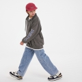 レタリングで両袖と裏面にポイントをくれた半集業マンツーマンですね ネックラインにストリングを加えてフードフィットスタイリングを完成してくれました 無難に楽しむ良いチャコールカラーでデイルルックで軽く活用できます