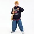 전면 영문과 넘버 디테일이 돋보이는 라운드넥니트 품도 여유있는 핏으로 편하게 착용할 수 있답니다 넥라인 소매와 밑단에는 굵은 시보리 짜임으로 안정감있는 디테일의 니트예요