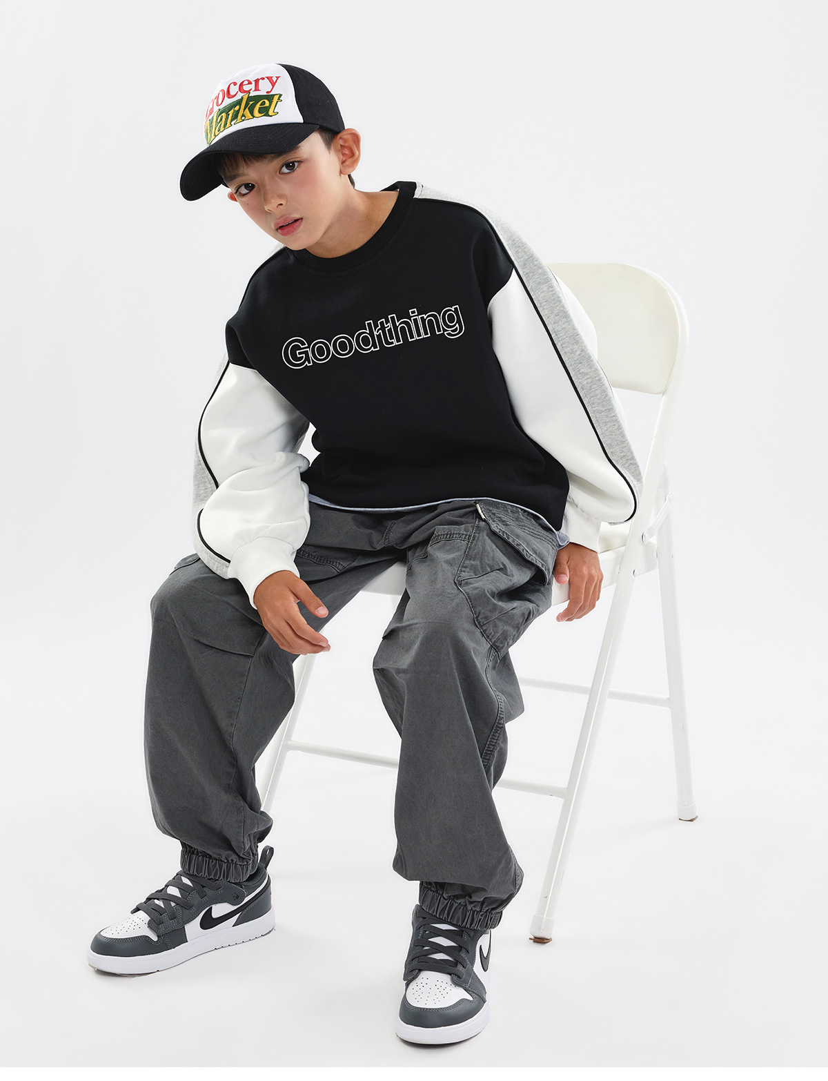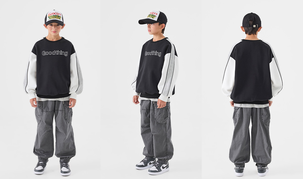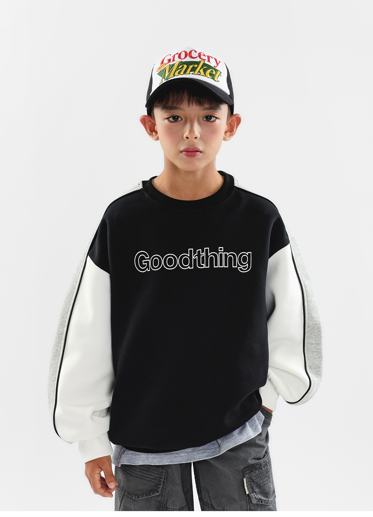 배색 포인트로 캐주얼한 무드를 더해주는 맨투맨이에요. 소매부터 어깨까지 연결된 파이핑 라인으로 깔끔한 포인트를 주었답니다 넉넉한 핏감으로 활동하기 좋고, 프론트 레터링이 감각적인 분위기를 연출해줄거예요:)