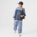 루즈핏 실루엣이 여유롭고, 조거 팬츠 밑단의 밴딩 처리로 활동성이 높아요.