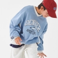 라이트블루 컬러 바탕에 배색된 브이넥 라인과