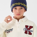 전면에는 큼직한 레터링과 자수 디테일을 배치해