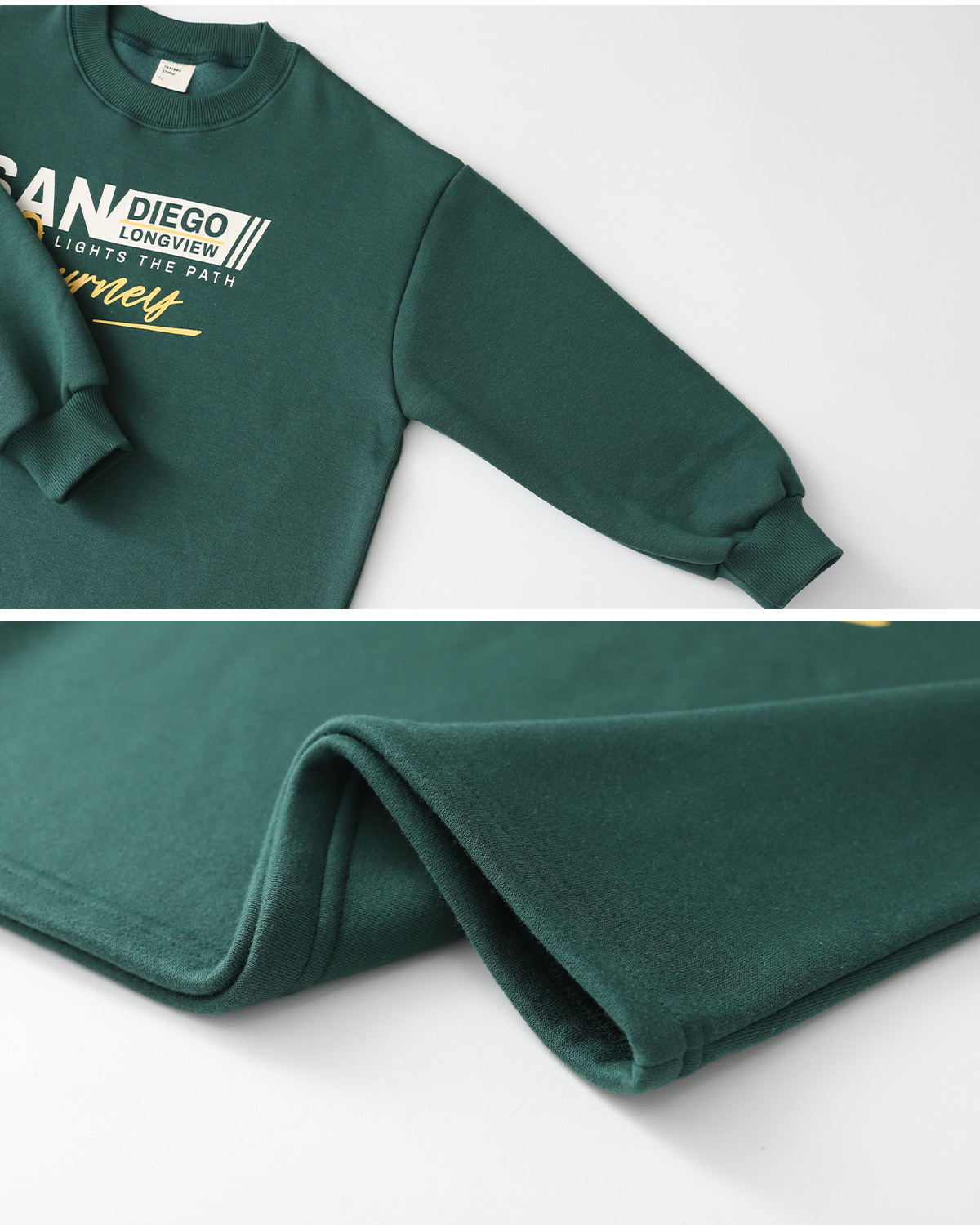 전면 영문 나염이 돋보이는 따뜻한 소재의 기모 티셔츠예요 여유로운 핏으로 착용감이 편안하고 다양한 하의와 코디하기 간편한 아이템이에요