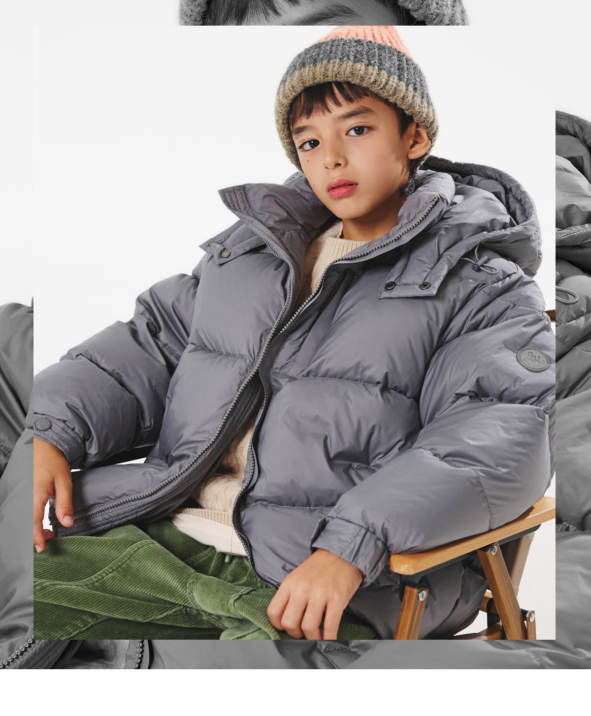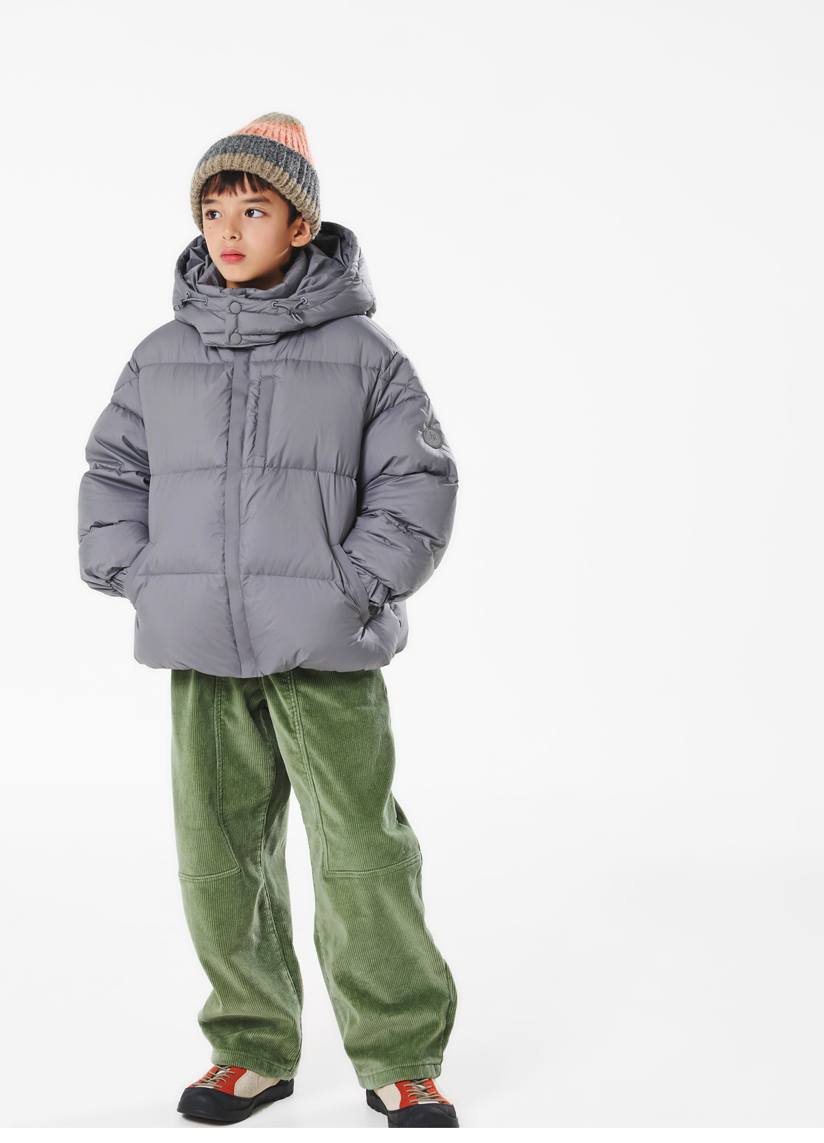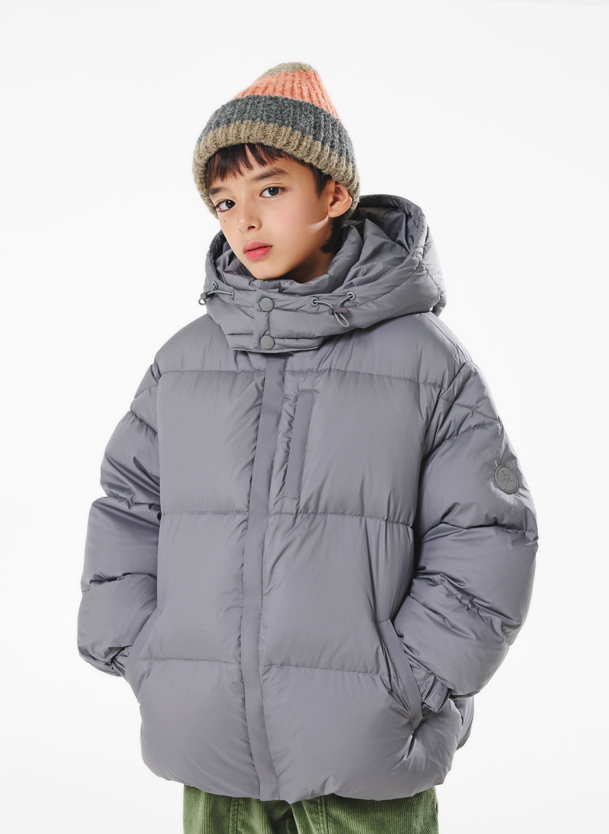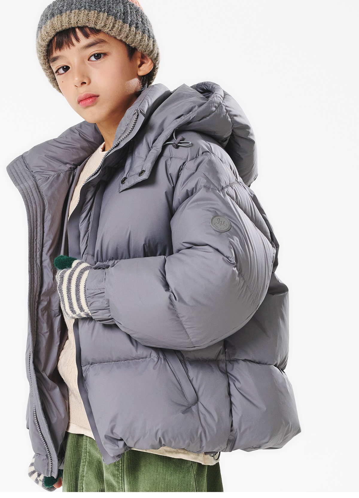 포근한 볼륨감이 매력적인 그레이 컬러 패딩 점퍼예요.