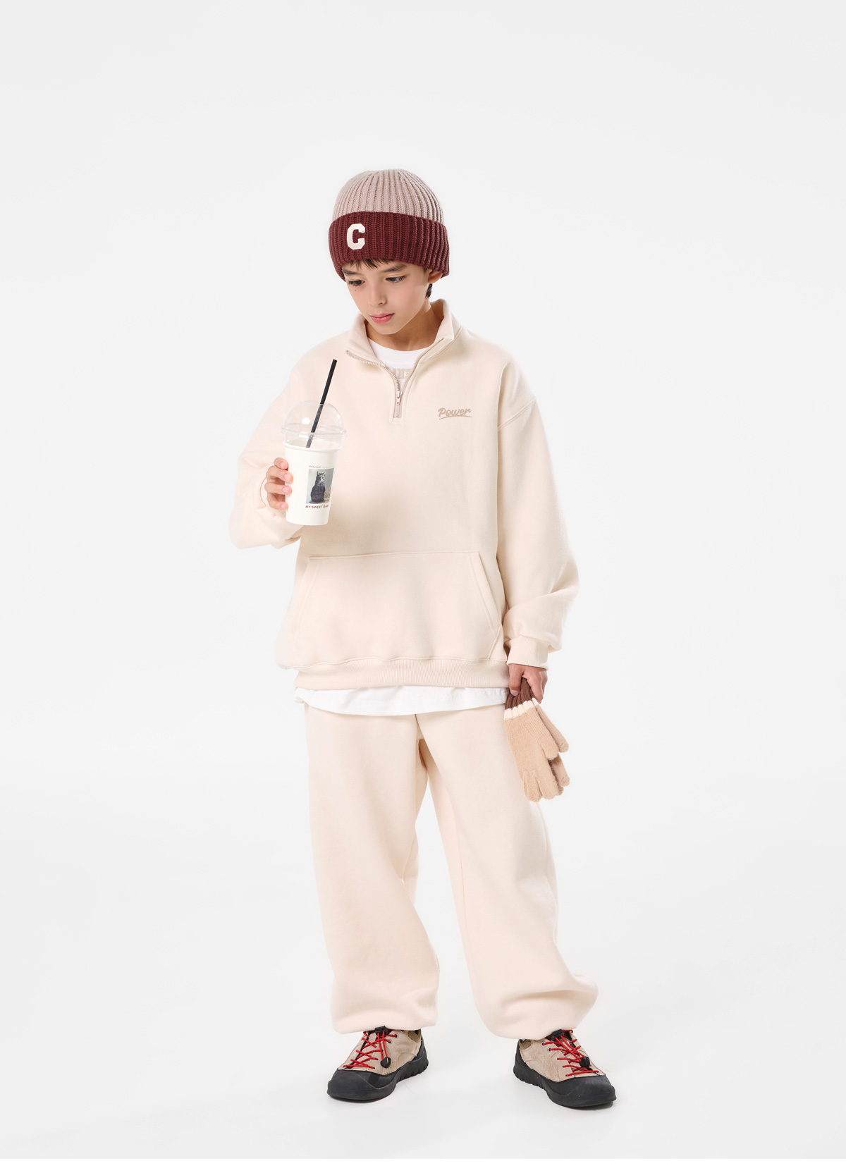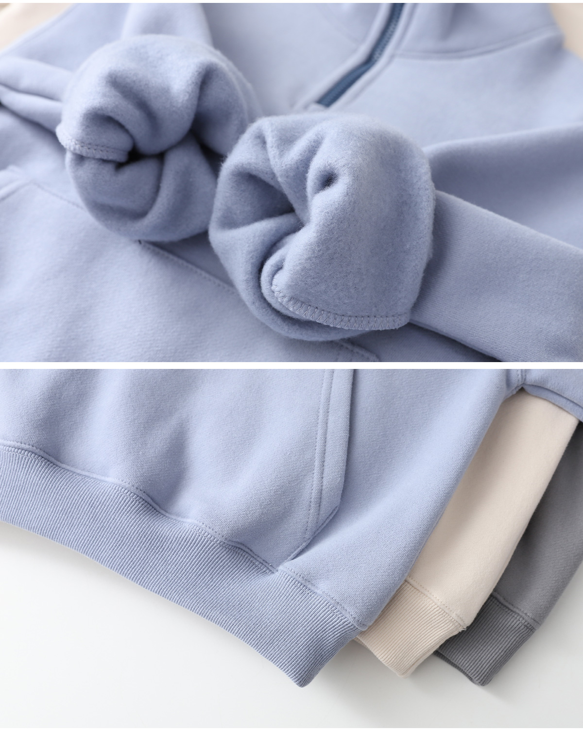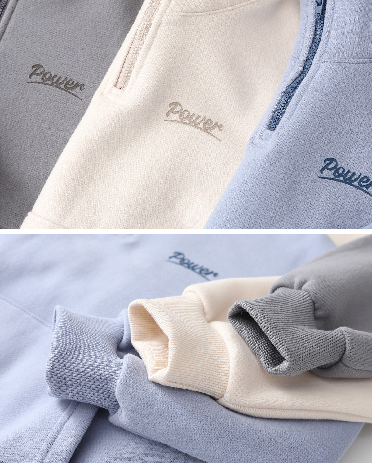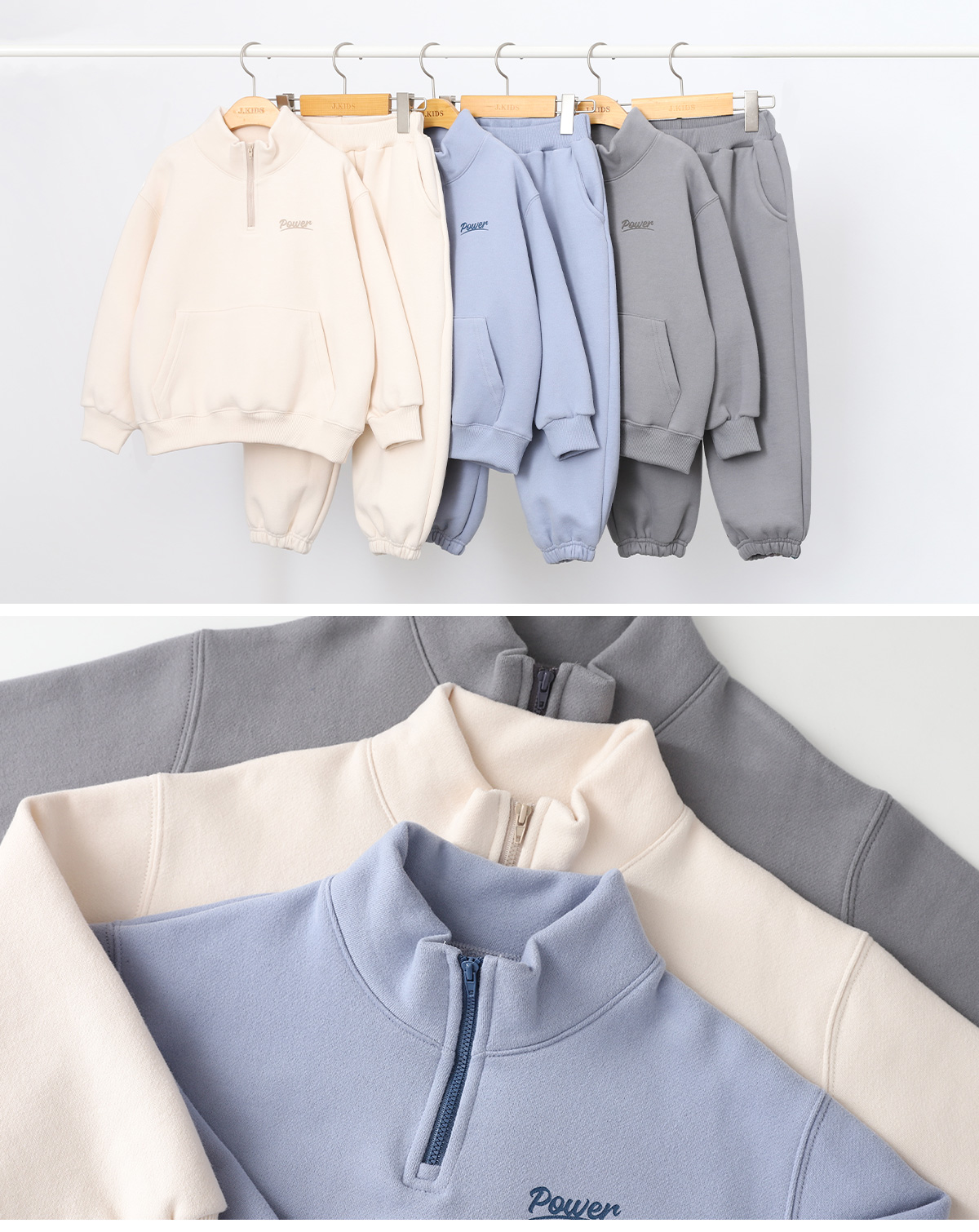 따뜻함과 편안함을 모두 갖춘 양기모 반집업 상하세트예요.