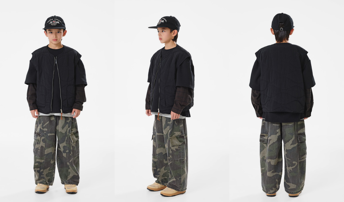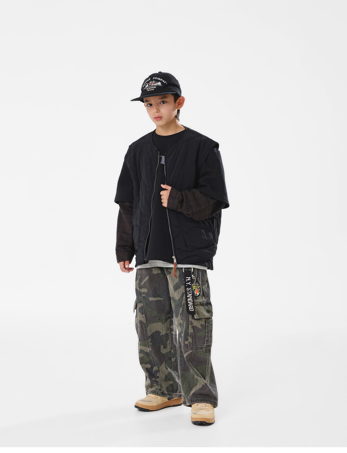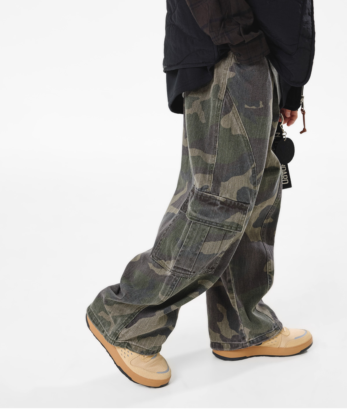 빈티지한 무드가 돋보이는 카모 카고팬츠예요.