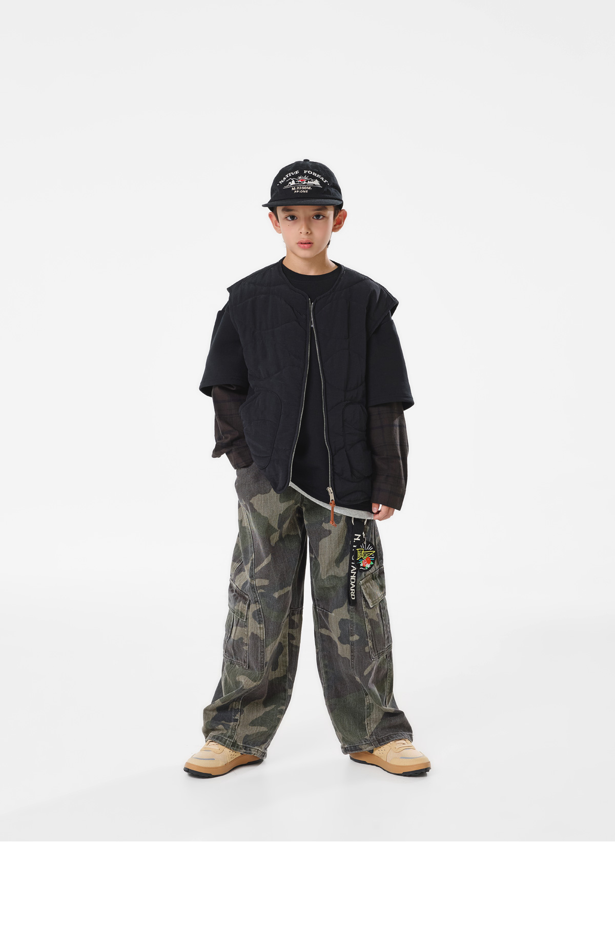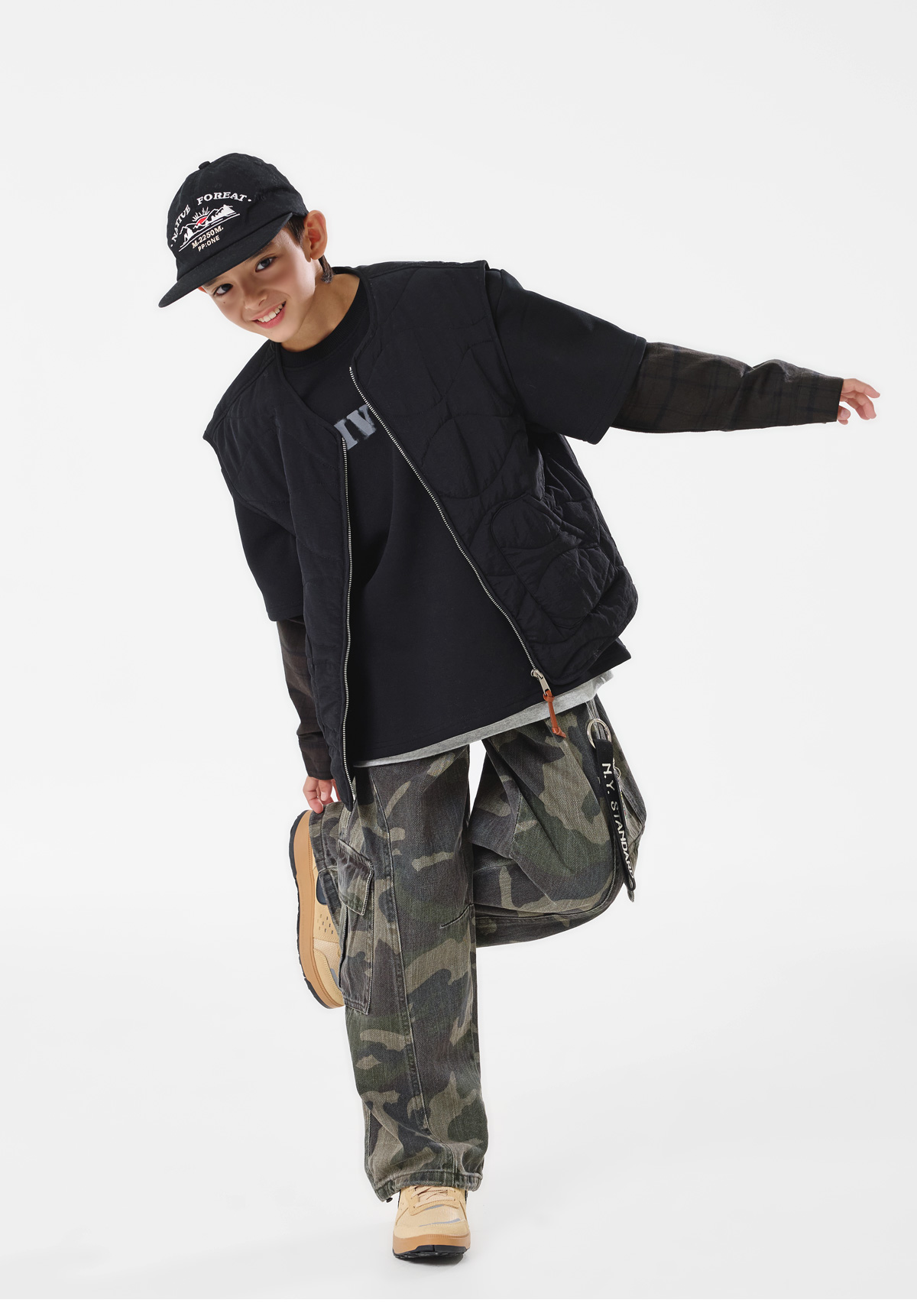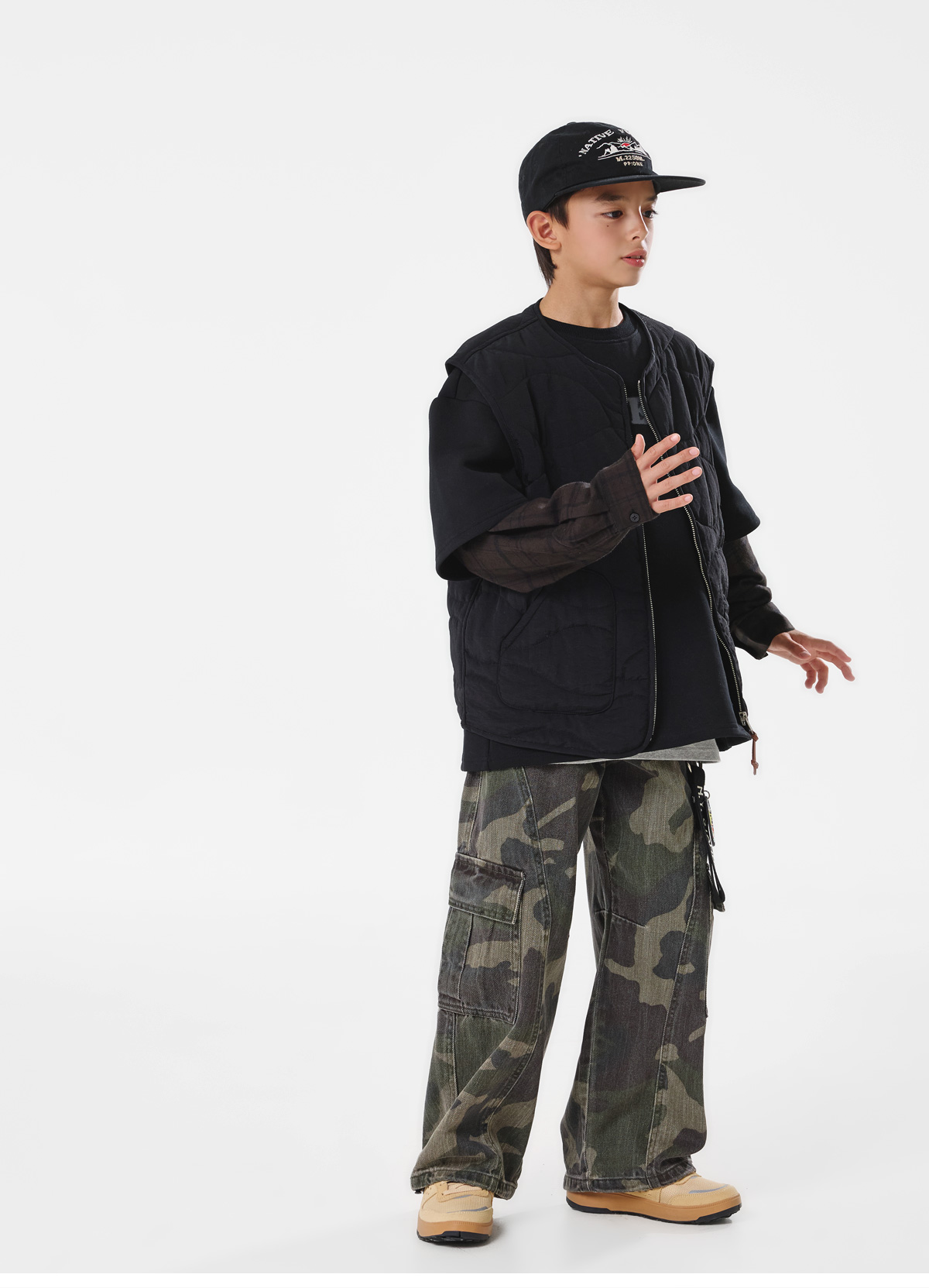 빈티지한 무드가 돋보이는 카모 카고팬츠예요.