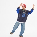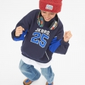 스포티한 무드가 돋보이는 네이비 기모 맨투맨이에요.