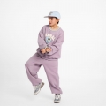 은은한 라벤더 컬러가 돋보이는 맨투맨과 조거팬츠 구성의 상하셋업이에요.