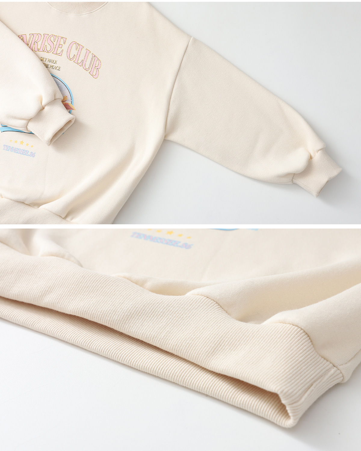 부드러운 크림 컬러가 포근한 인상을 더해주는 기모 맨투맨이에요.
