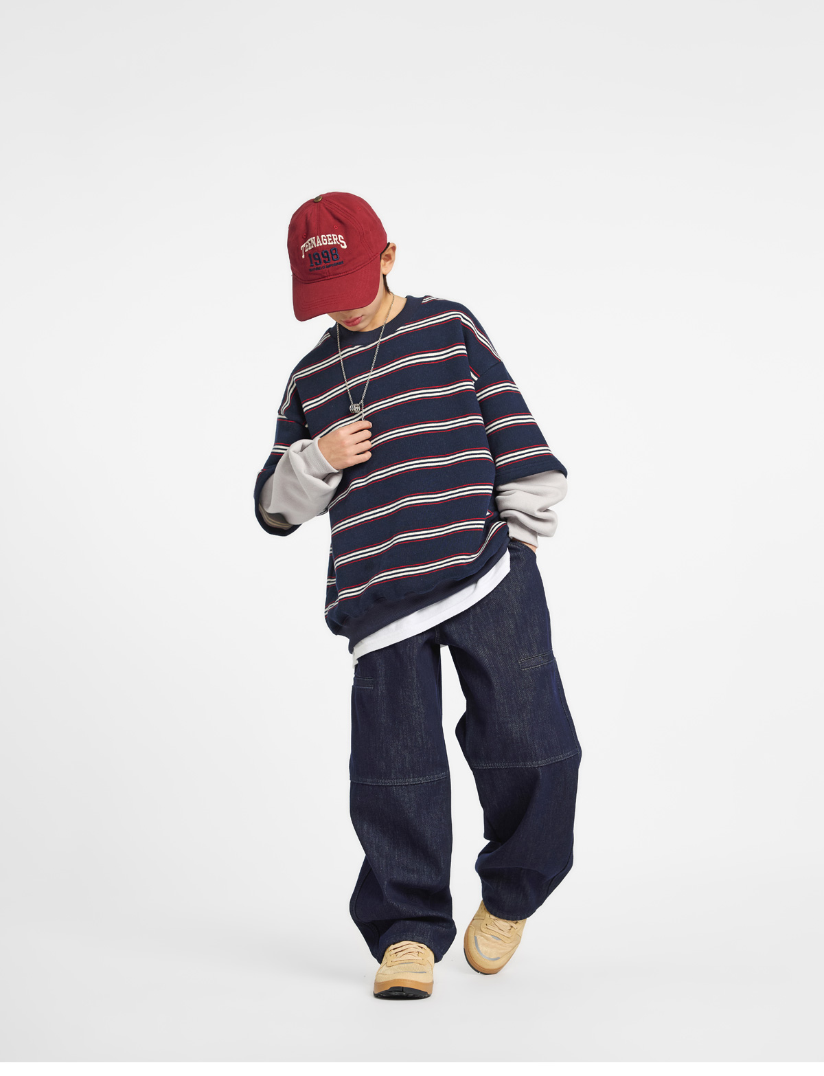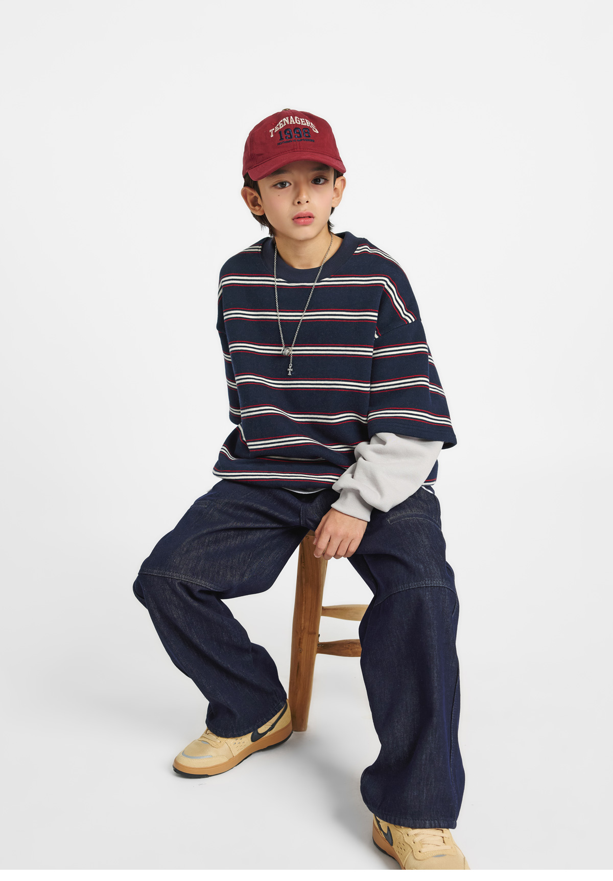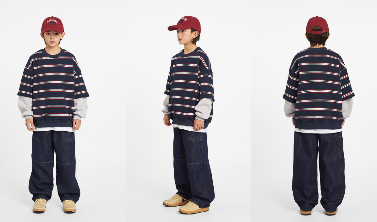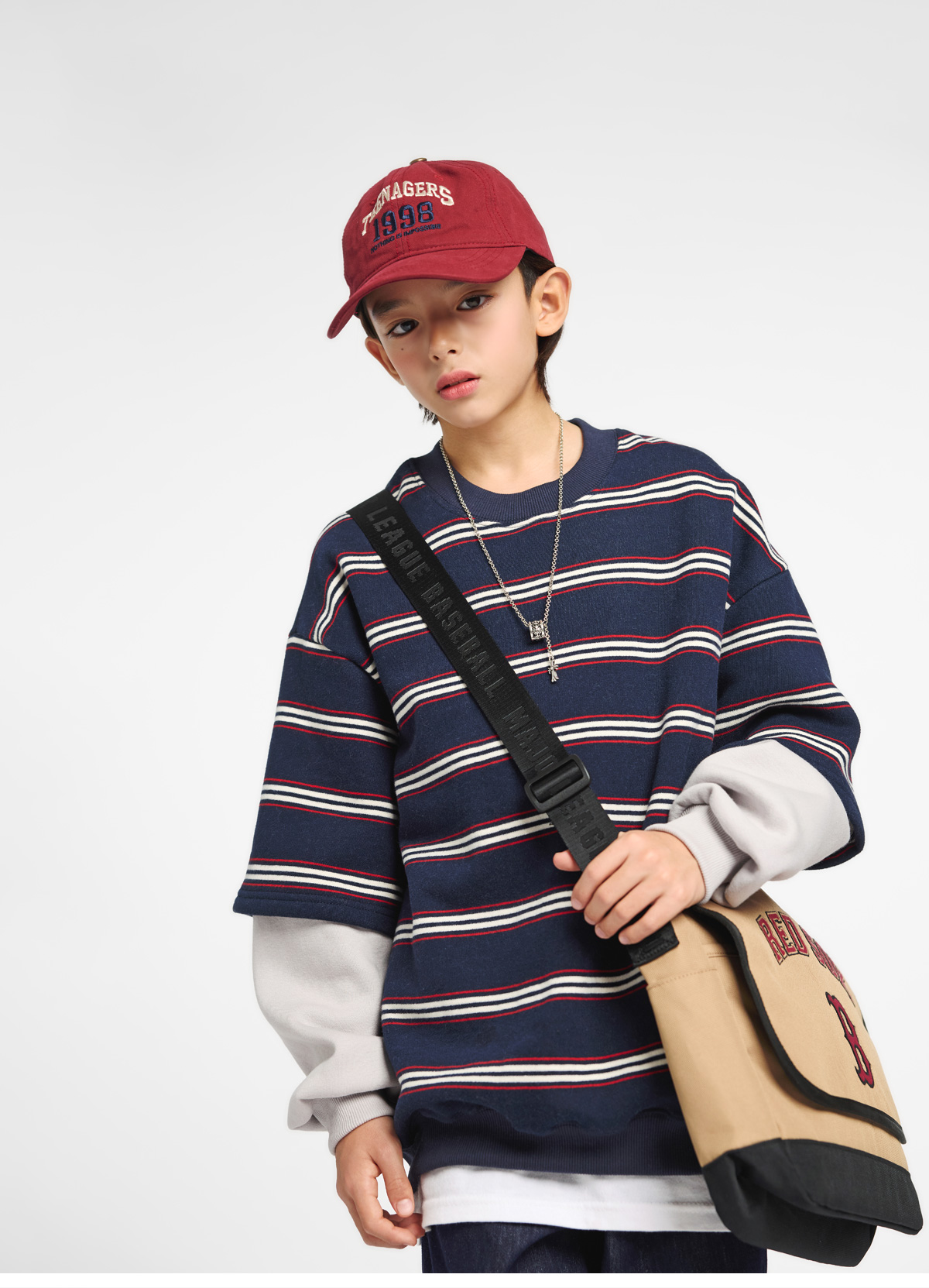 네이비 컬러의 양기모 레이어드 맨투맨이에요.